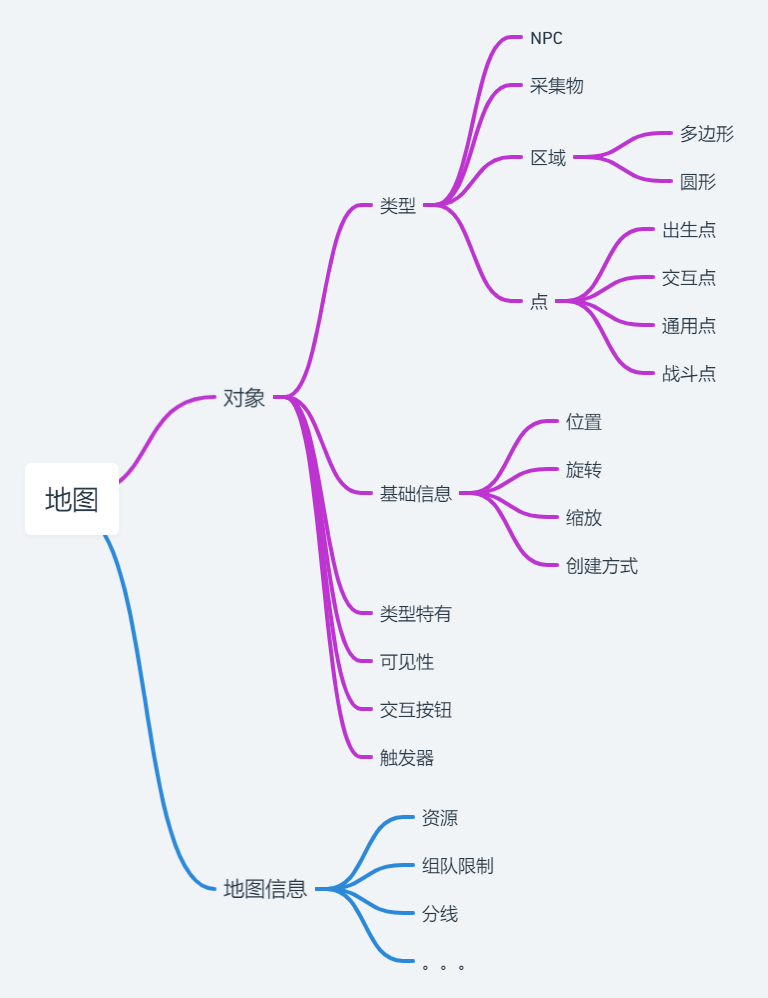 场景中的对象可以按需分成几类,常见的有npc,采集物,区域,点等等。