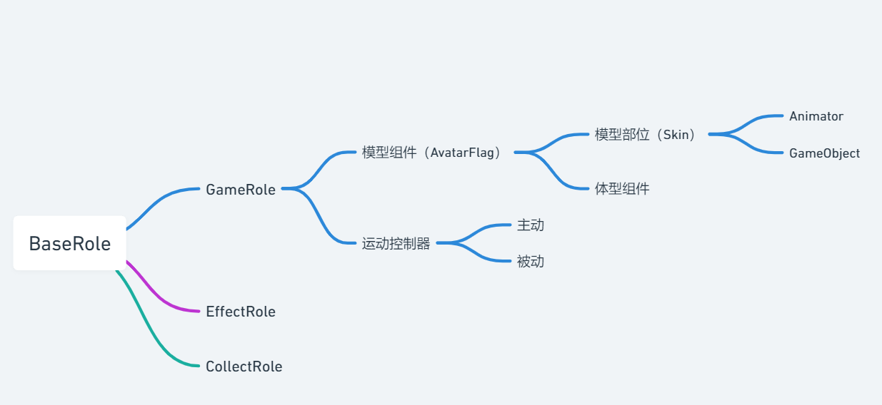 对BaseRole进行派生就是具体的游戏对象,如添加了控制器以后就是角色,再添加主动移动的控制器以后就是主角,通过绑定不同的组件实现Role的不同方向功能。