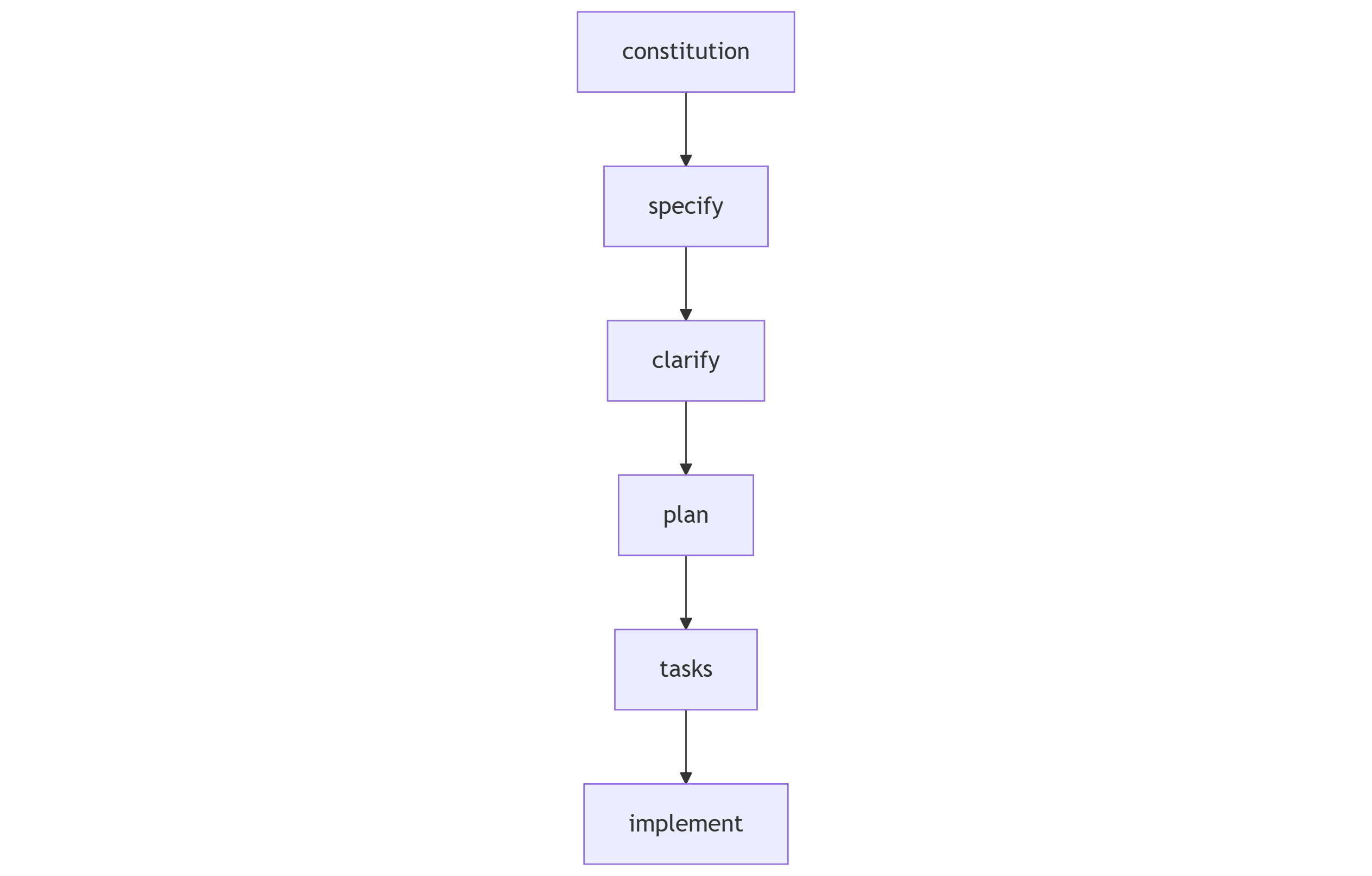 安装和初始化完成后,Spec Kit 采用规范驱动的开发流程,主要通过 AI 助手中的 slash commands 执行。